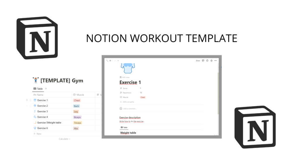 This template is all you need, it allows you to register the weight for each exercise in the day. You have an internal table with the days you do the specific exercise.